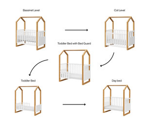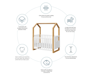 This cubby house designed cot grows with your baby from birth to toddler, so it will last for years to come, with all the conversion accessories included – so it is great value for you and your family with a toddler bed that actually looks like a bed.